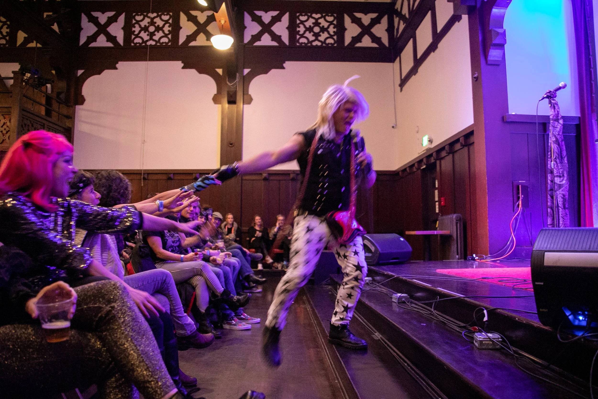 Hosted by Krush, the ’80s-style British rock-star turned life-coach. With over-the-top wisdom and electric enthusiasm, he guides audiences through high-wire circus acts, campy sing-alongs, silly slide show and a life-changing encore!