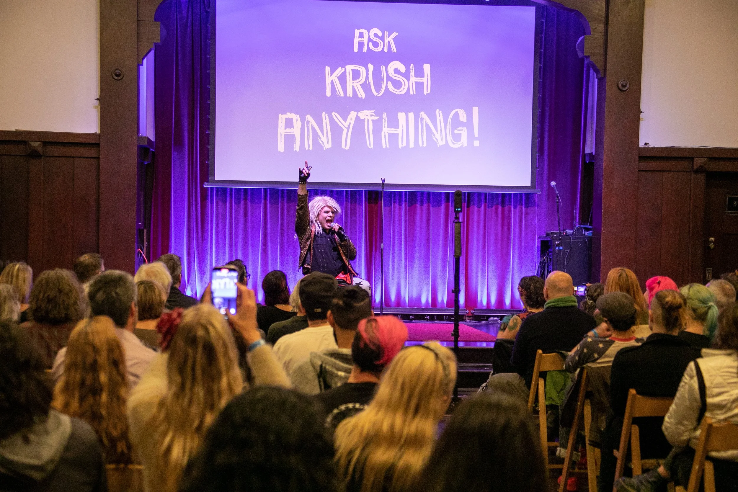 A satirical self-help guru with a heart of gold and unwavering optimism, Krush delivers electrifying advice to Bay Area audiences.